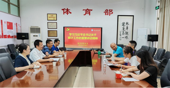 为深入学习贯彻习近平新时代中国特色社会主义思想,全面贯彻落实党的二十大精神和习近平总书记在二十届中央审计委员会第一次会议上的重要讲话精神,6月26日审计工作部党支部与体育部党总支开展联学共建交流活动。审计工作部党支部书记曾健文、体育部党总支书记钟罗军、体育部主任李旭武等党员代表参加活动。